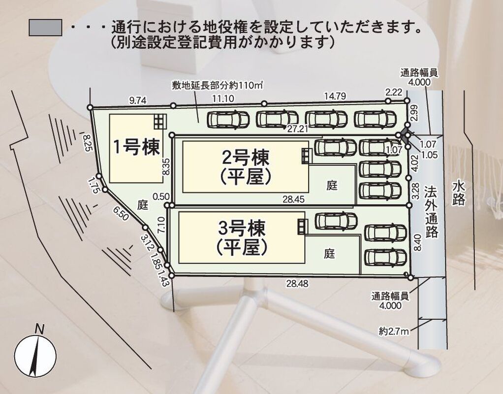 ●敷地面積約66坪以上!車種により3~4台駐車可能!●2・3号棟はバリアフリーな平屋!●防犯カメラ付き!