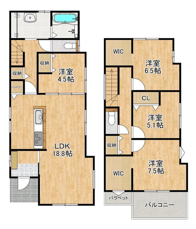 ●西鉄バス「今里」停まで徒歩5分!●パントリーや大容量WIC付でお部屋もスッキリ!●並列で2台駐車可能!