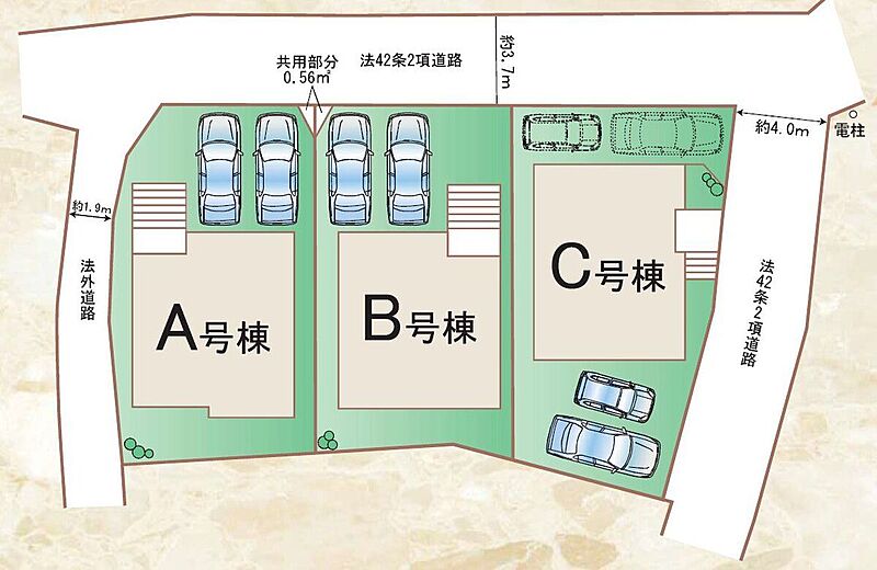 | 駐車場 | - | 道路の幅員 | 道路幅3.7m・4.0m アスファルト舗装 |