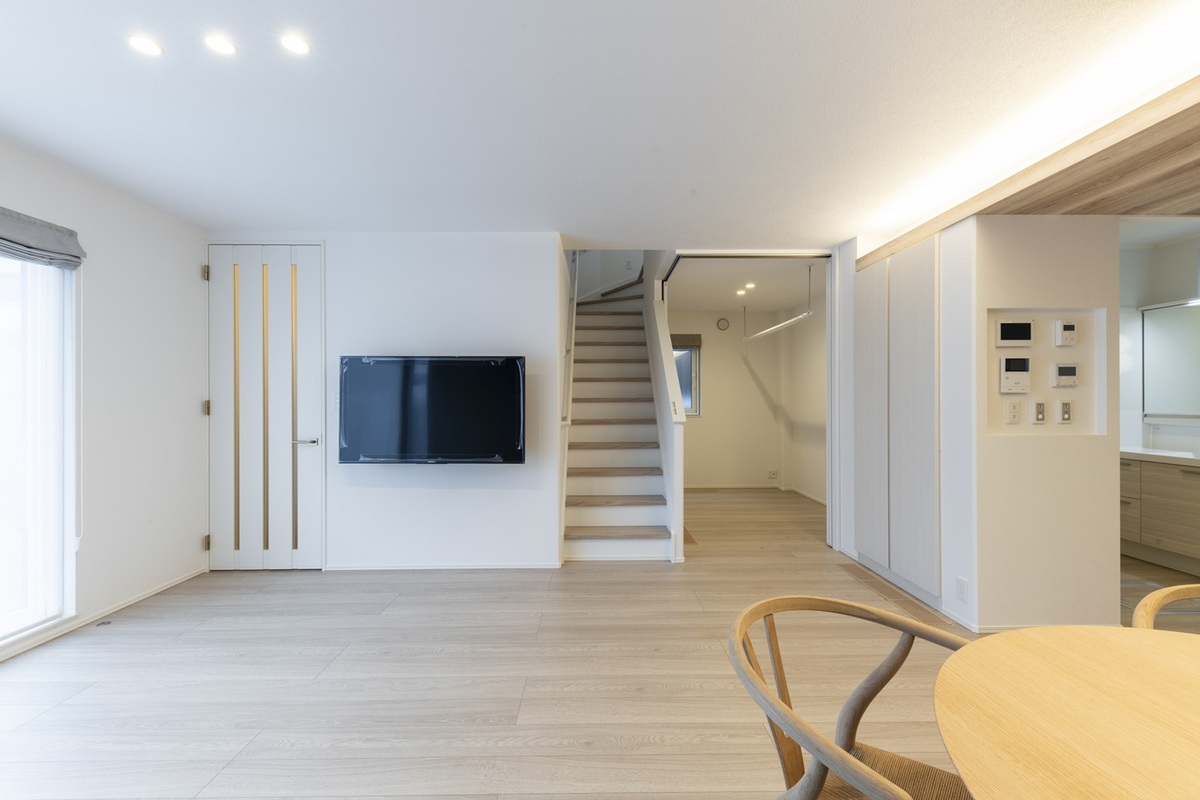 【リビング】空間をより広く見せてくれる壁掛けTV採用です!