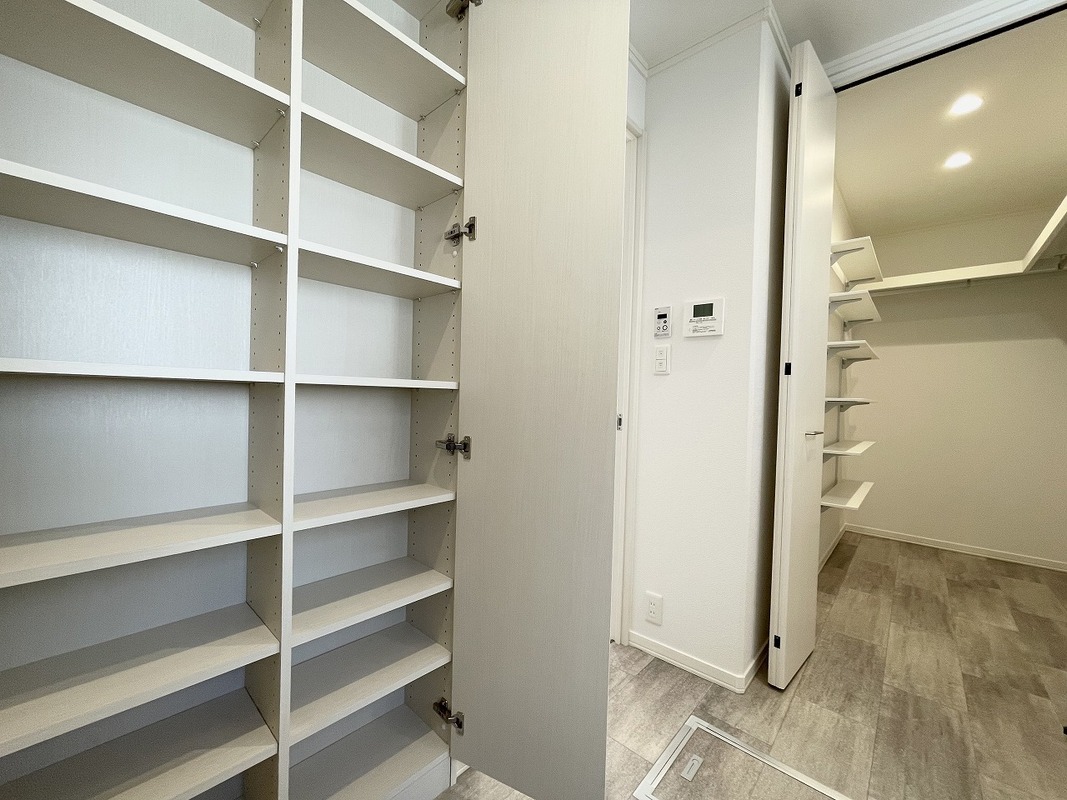 【ファミリークローゼット】サニタリー横にファミリークローゼットを備えた嬉しい間取り!パジャマや下着はこちらに収納!