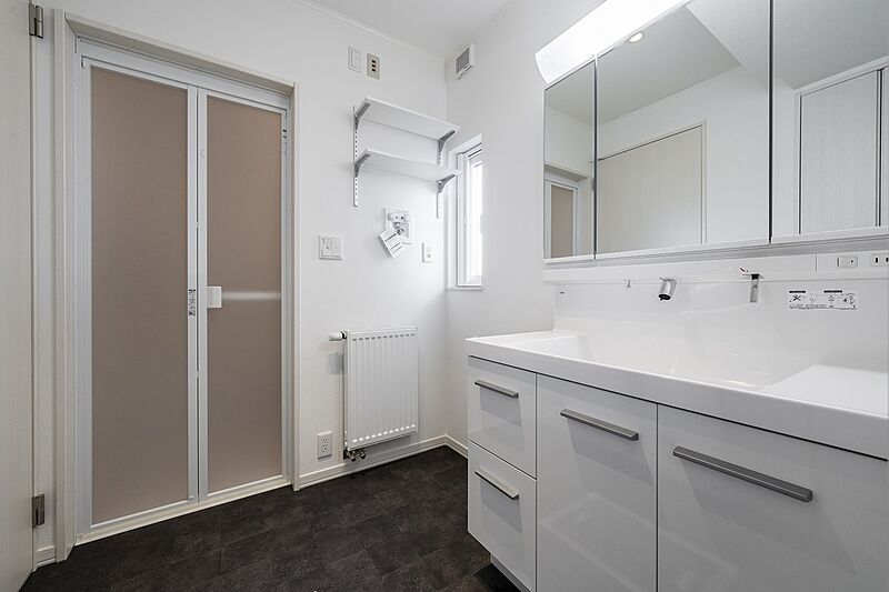 【サニタリー】窓があり明るく清潔なサニタリー!収納も備え付けです♪