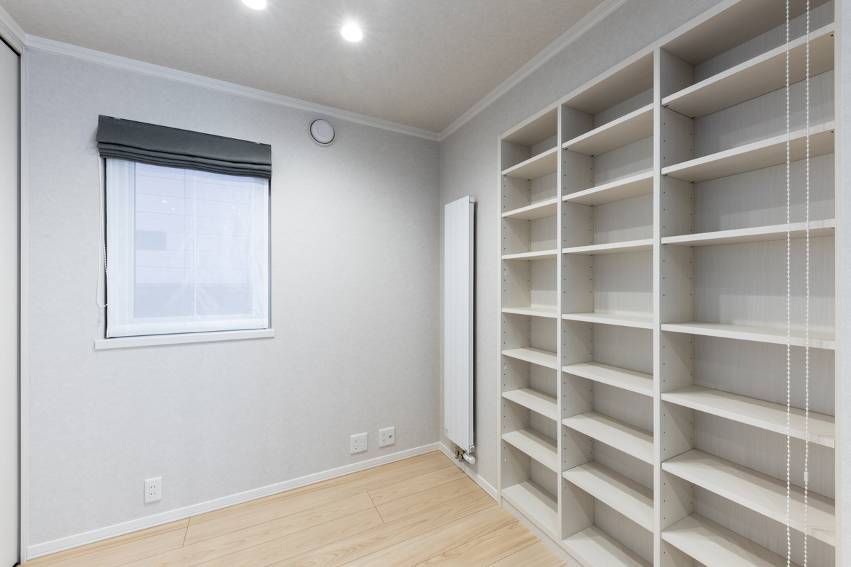 【フリースペース】大容量の本棚を備えたフリースペース。物干しスペースとしても活用できます!