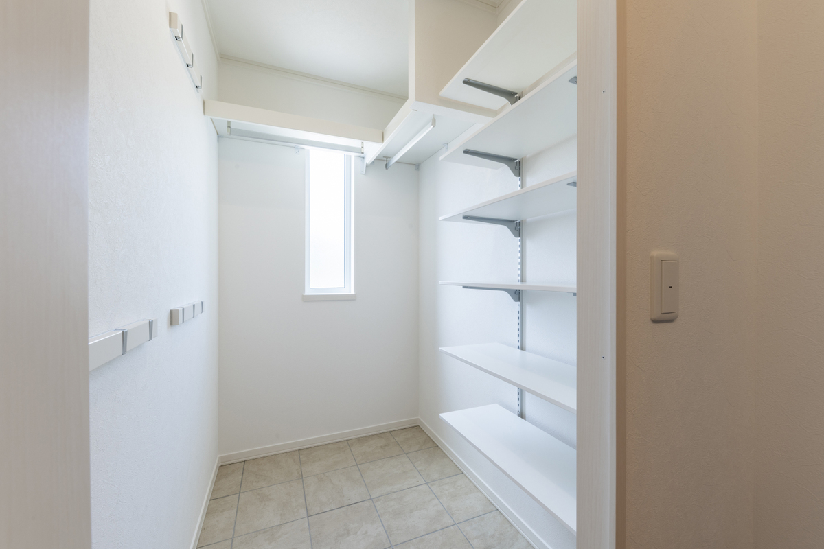 【シューズクローク】土間続きのシューズクロークには、折りたたんだベビーカーや除雪道具を収納いただけます!