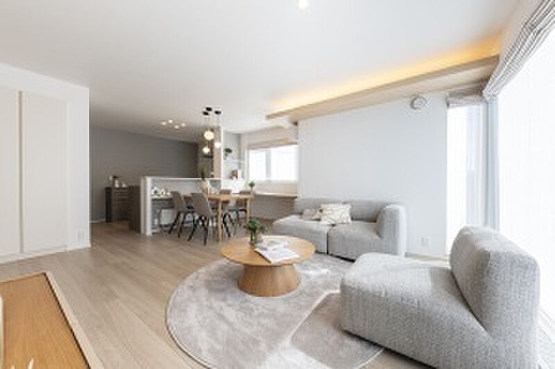 【No.8】柔らかい木目とライトグレーのインテリアでコーディネートしたLDK