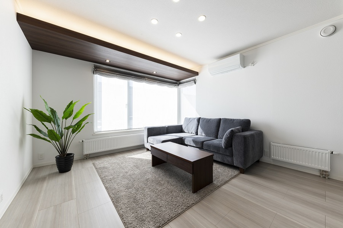 【リビング】L型開口の窓からたくさんの光を取り込む明るいリビング