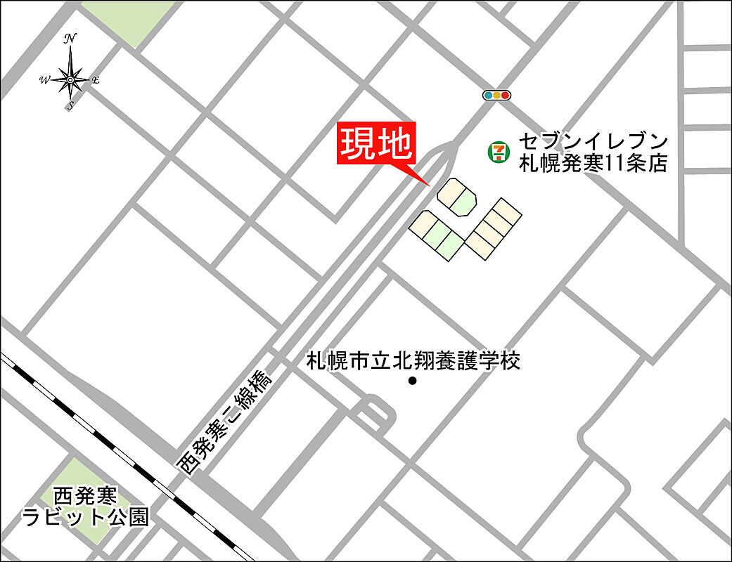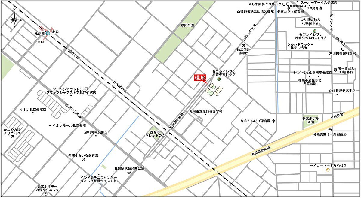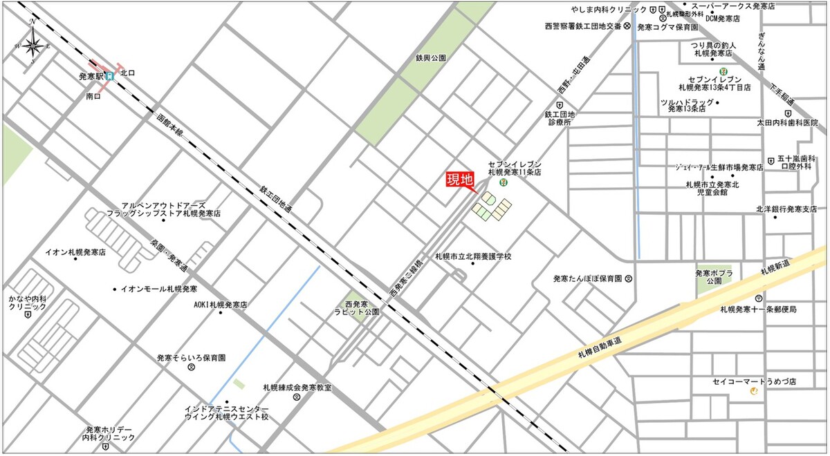 JR函館本線「発寒」駅 徒歩13分 地下鉄東西線「宮の沢」駅 徒歩15分 |