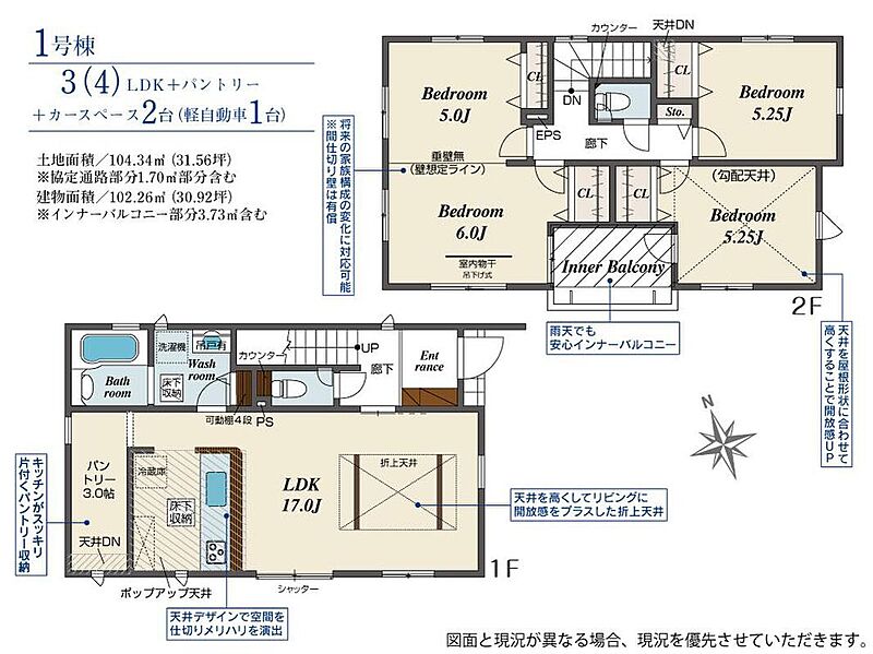 - 101.8m2・104.34m2(実測)