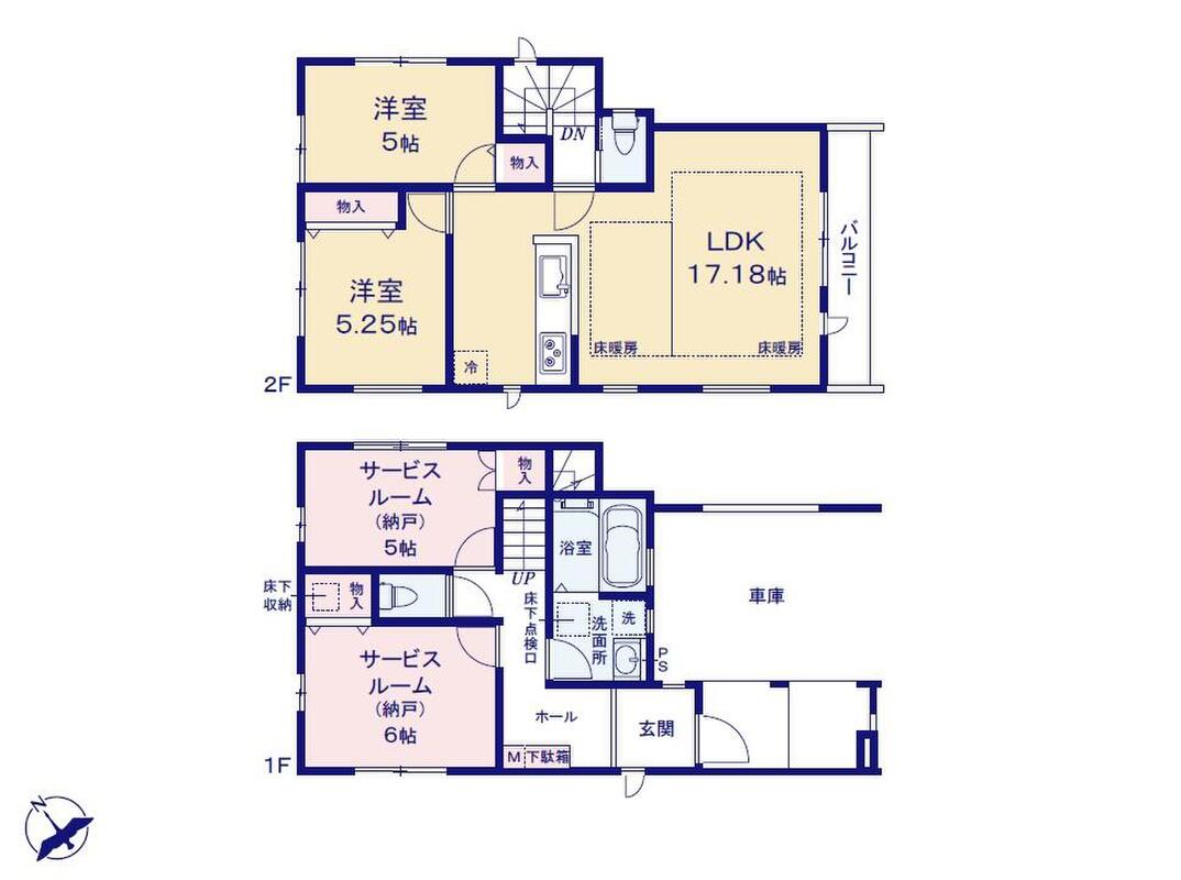 | 間取り | 2LDK+2S(納戸) | 建物構造 | 木造サイディング貼アスファルトシングル葺2階建(IDS工法) |