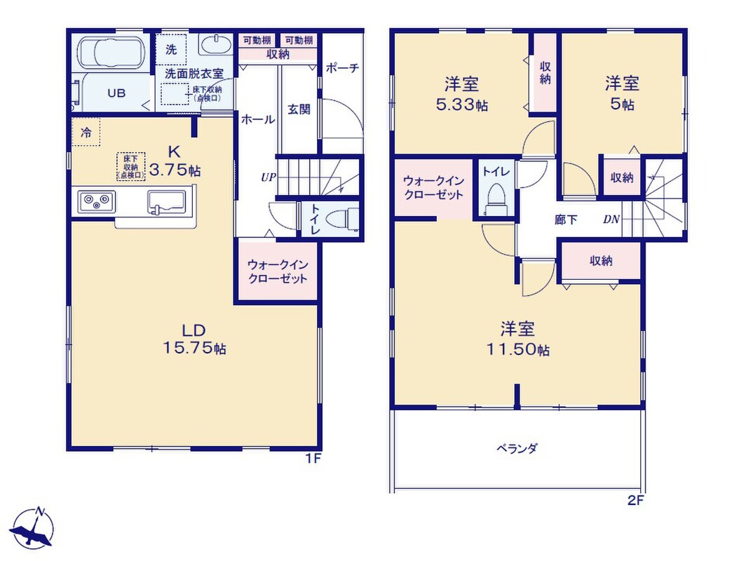 5号棟 間取り 3LDK+S 価格 3480万円 建物面積 101.25m2 土地面積 100.13m2 -
