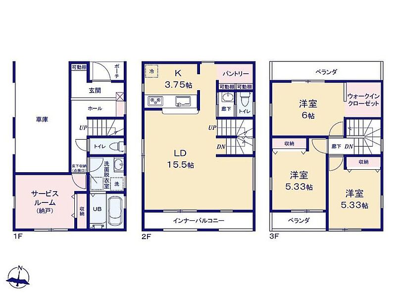 | 間取り | 3LDK+S(納戸) | 建物構造 | 木造在来軸組工法3階建 |