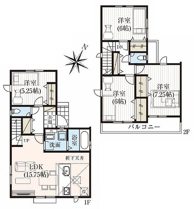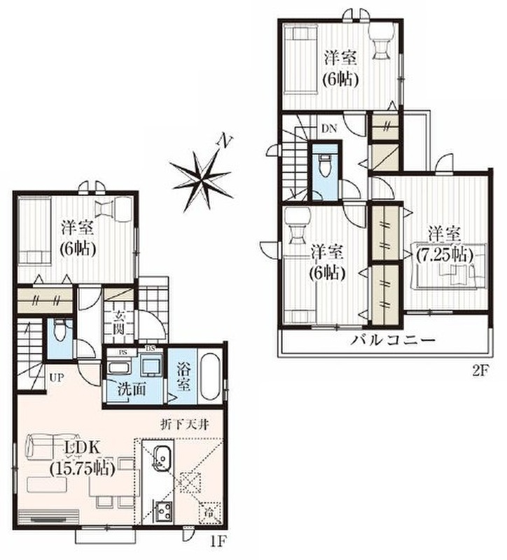 - ※完成予想図やCG合成画像は、門塀・植栽・庭・外観等、実際とは多少異なる場合があります。