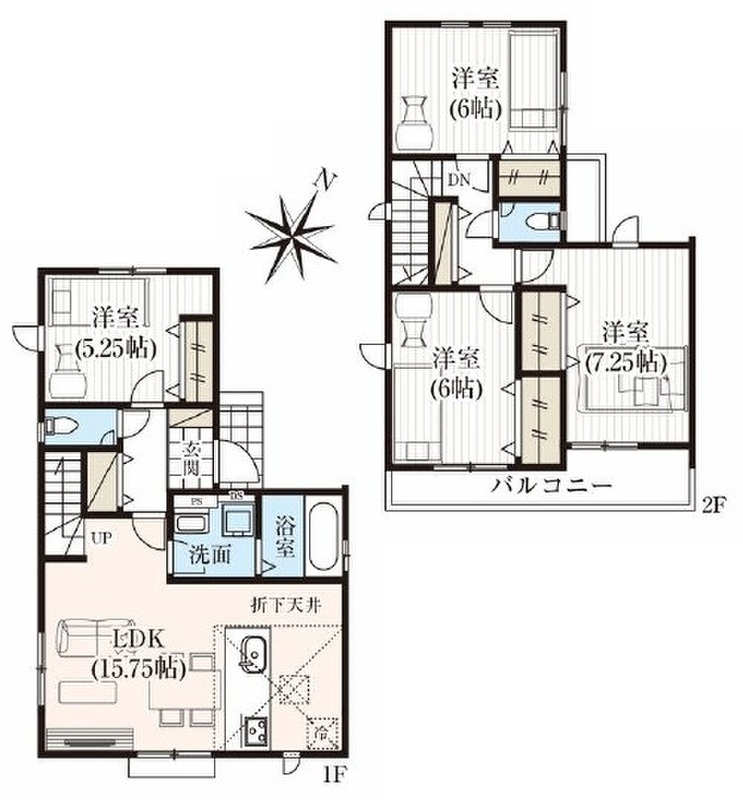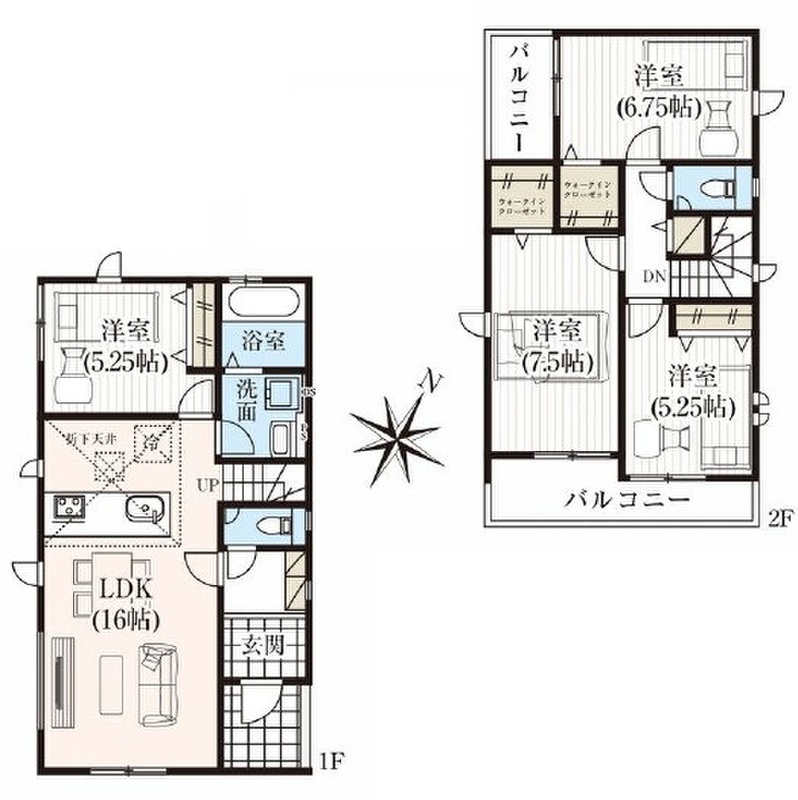 4号棟 間取り 4LDK 価格 4399万円 建物面積 96.88m2 土地面積 100.05m2 -