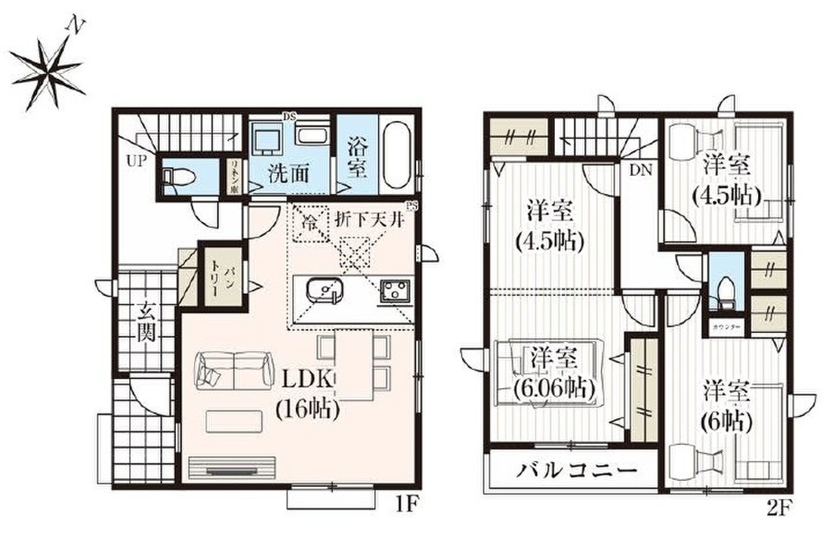 1号棟 間取り 4LDK+パントリー 価格 4799万円 建物面積 99.36m2 土地面積 95.79m2 -
