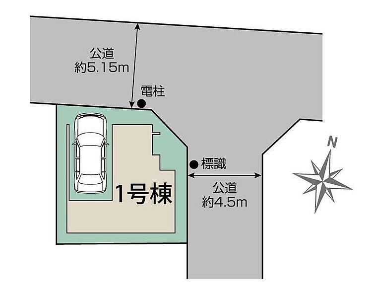 | 駐車場 | 1台 | 道路の幅員 | 道路幅:4.5m・5.1m、アスファルト舗装、東側公道、北側公道 |