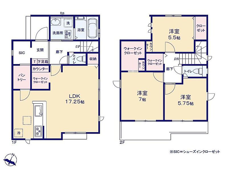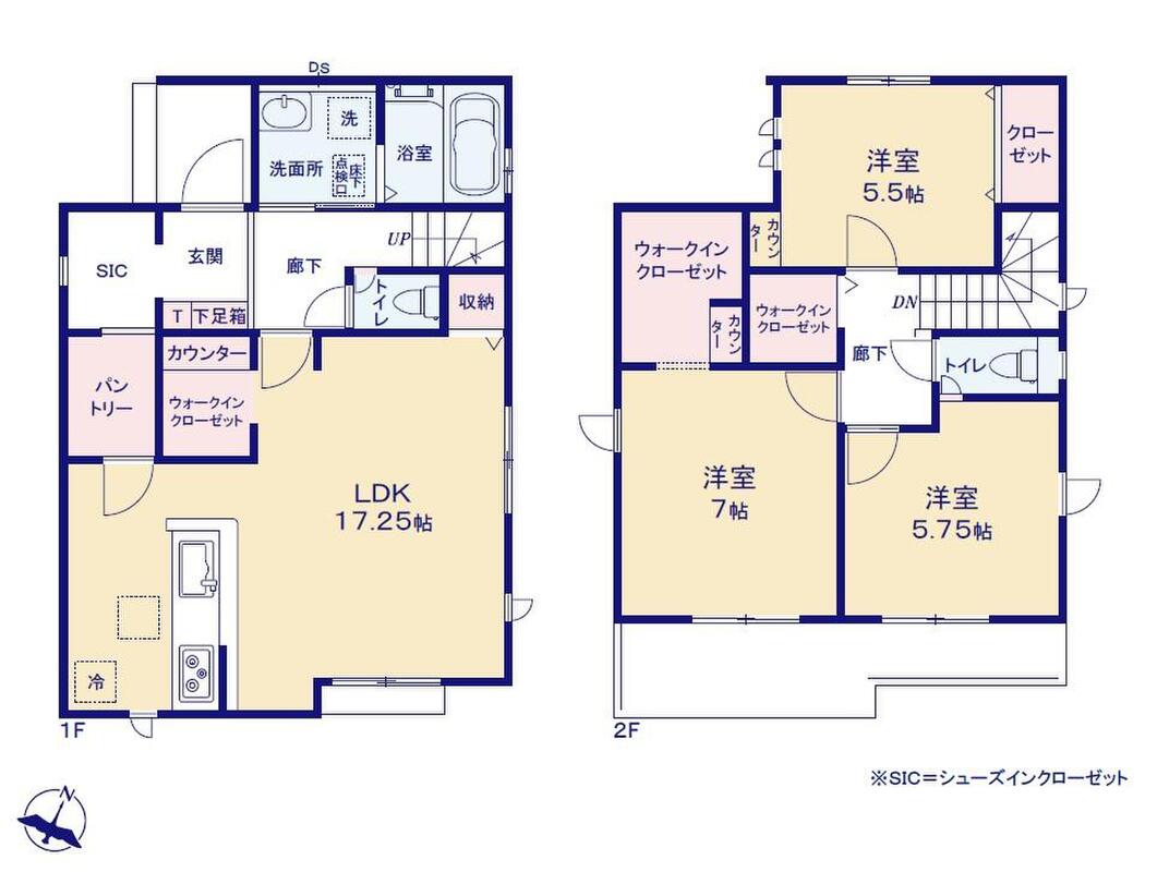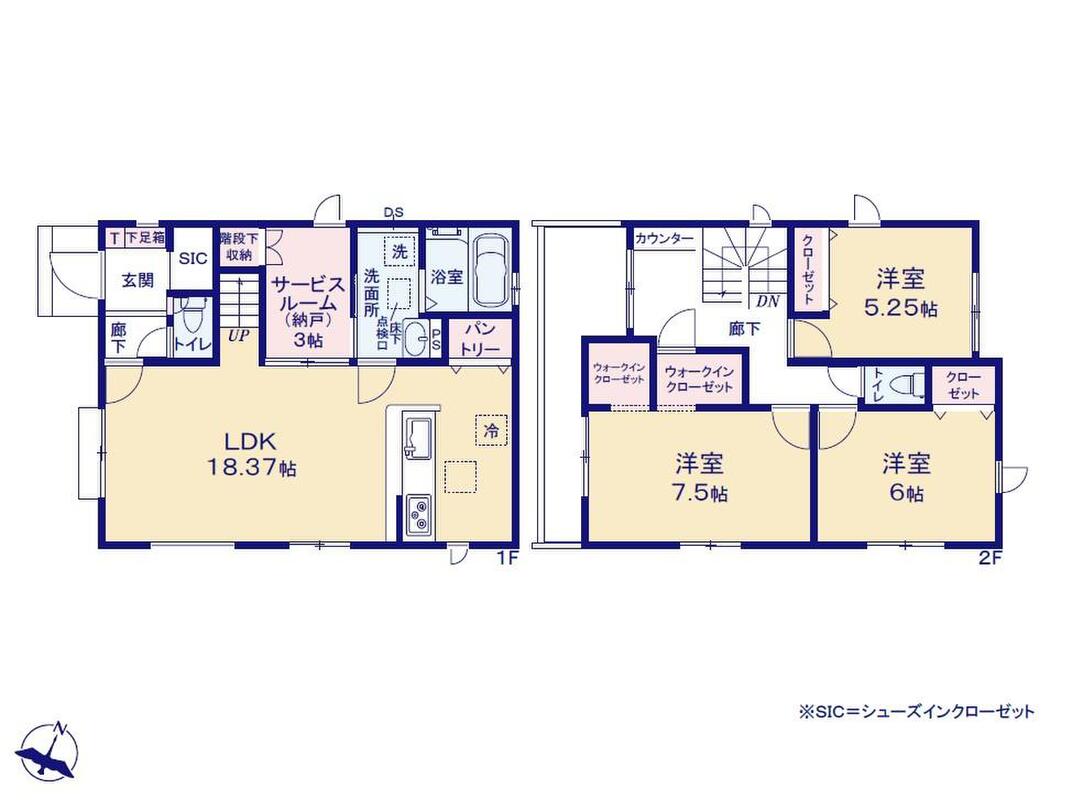 パントリー、WIC、SIC等で整う家!車2台~本日見学可~地震に強い家