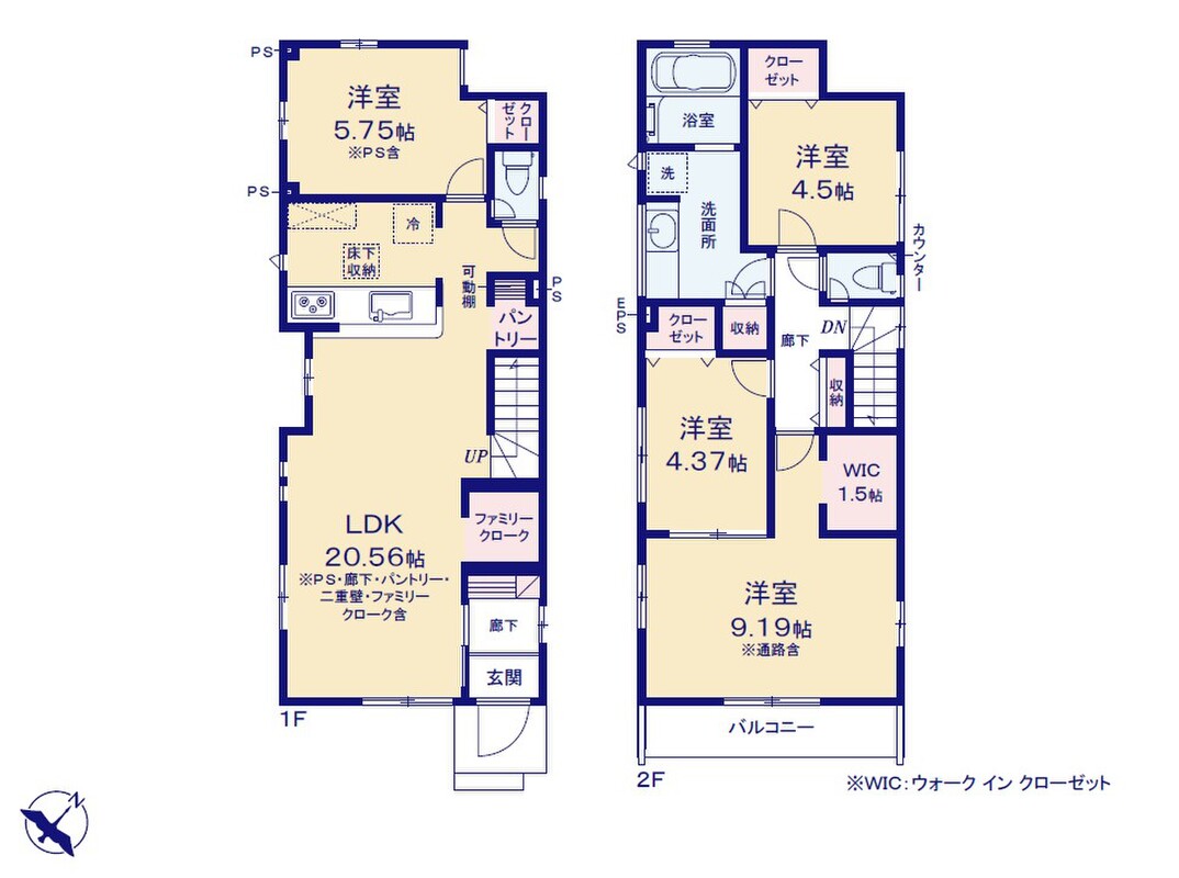 ■パントリー(2、3号棟)やウォークインクローゼット付など収納豊富