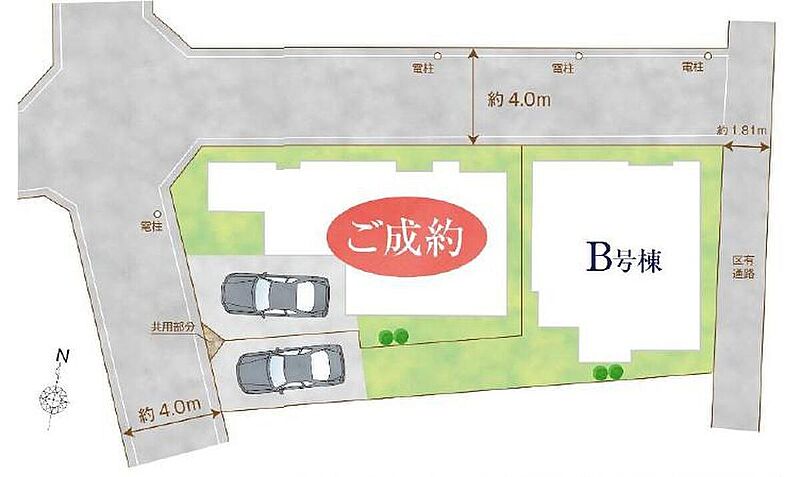 | 駐車場 | 1台 | 道路の幅員 | 道路幅:4m、アスファルト舗装、西側公道 |