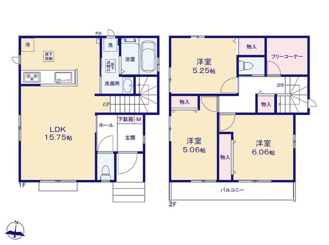 | 建物面積 | 82.59m2・83.84m2(実測) | 土地面積 | 100.4m2・100.41m2(実測) |