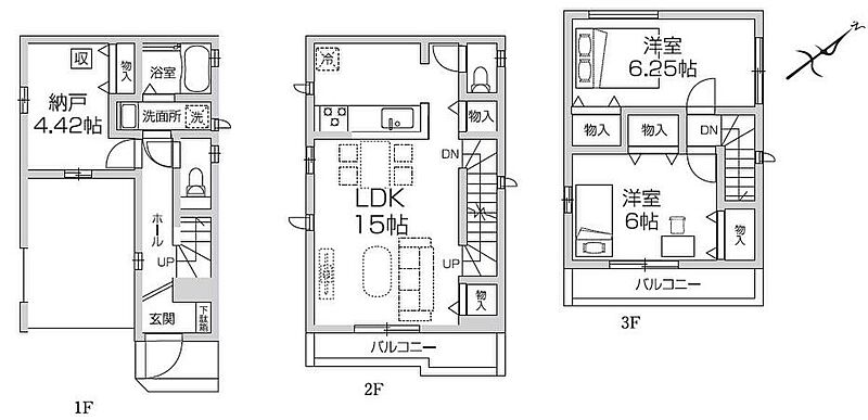 | 間取り | 2LDK+S(納戸) | 建物構造 | 木造サイディング貼ルーフィング葺3階建 |