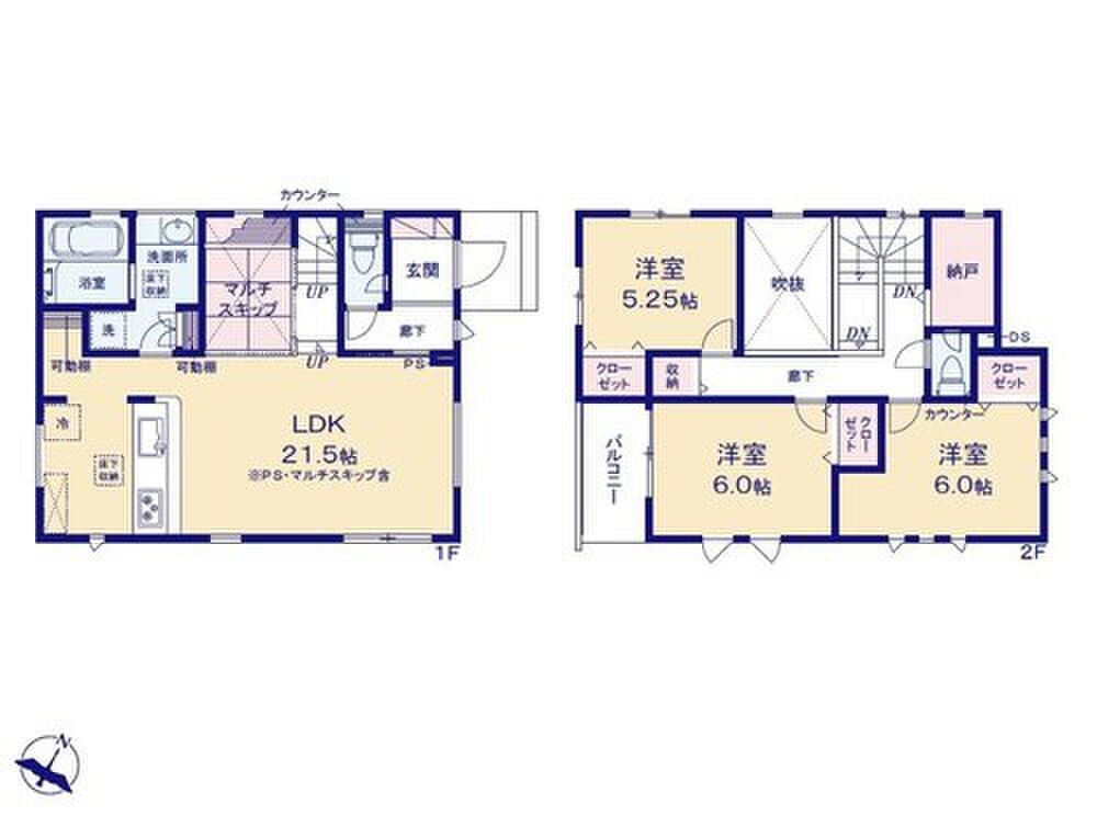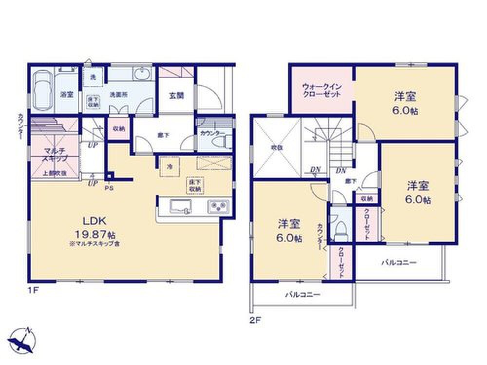 2号棟 間取り 3LDK 価格 4598万円 建物面積 102.26m2 土地面積 159.36m2 -