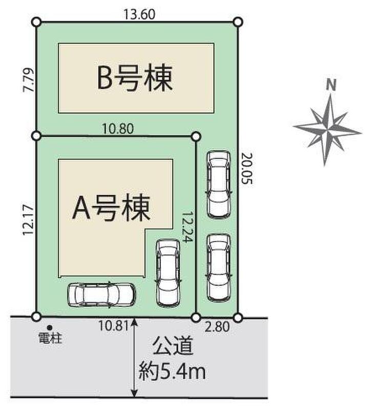 | 駐車場 | 2台 | 道路の幅員 | 道路幅:5.4m、アスファルト舗装、南側公道 |