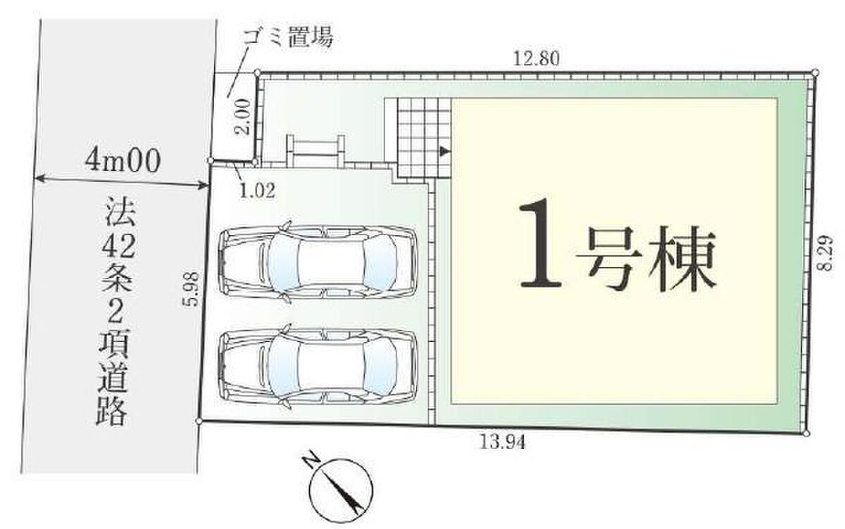 | 駐車場 | 2台 | 道路の幅員 | 道路幅:4m、アスファルト舗装、北西4m公道 |