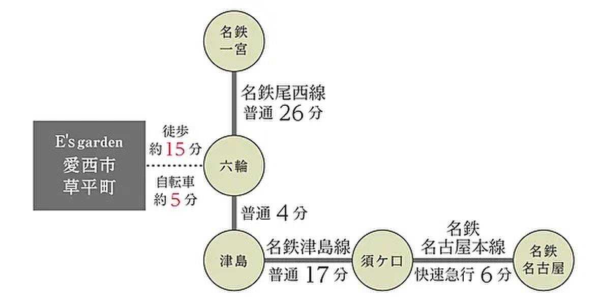 名鉄尾西線「六輪」駅 (約1160m 徒歩約15分 自転車約5分)