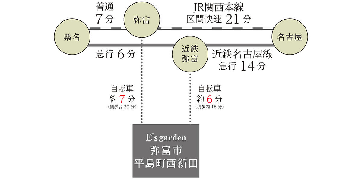 近鉄名古屋線「近鉄弥富」駅 徒歩18分 自転車約6分 JR関西本線「弥富」駅 徒歩20分 自転車約7分 |