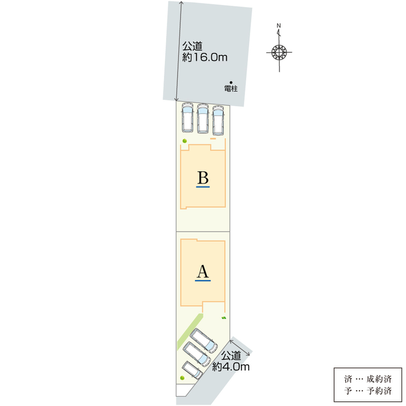 | 駐車場 | 3台 | 道路の幅員 | 北側約16.0m公道、南側約4.0m公道 |