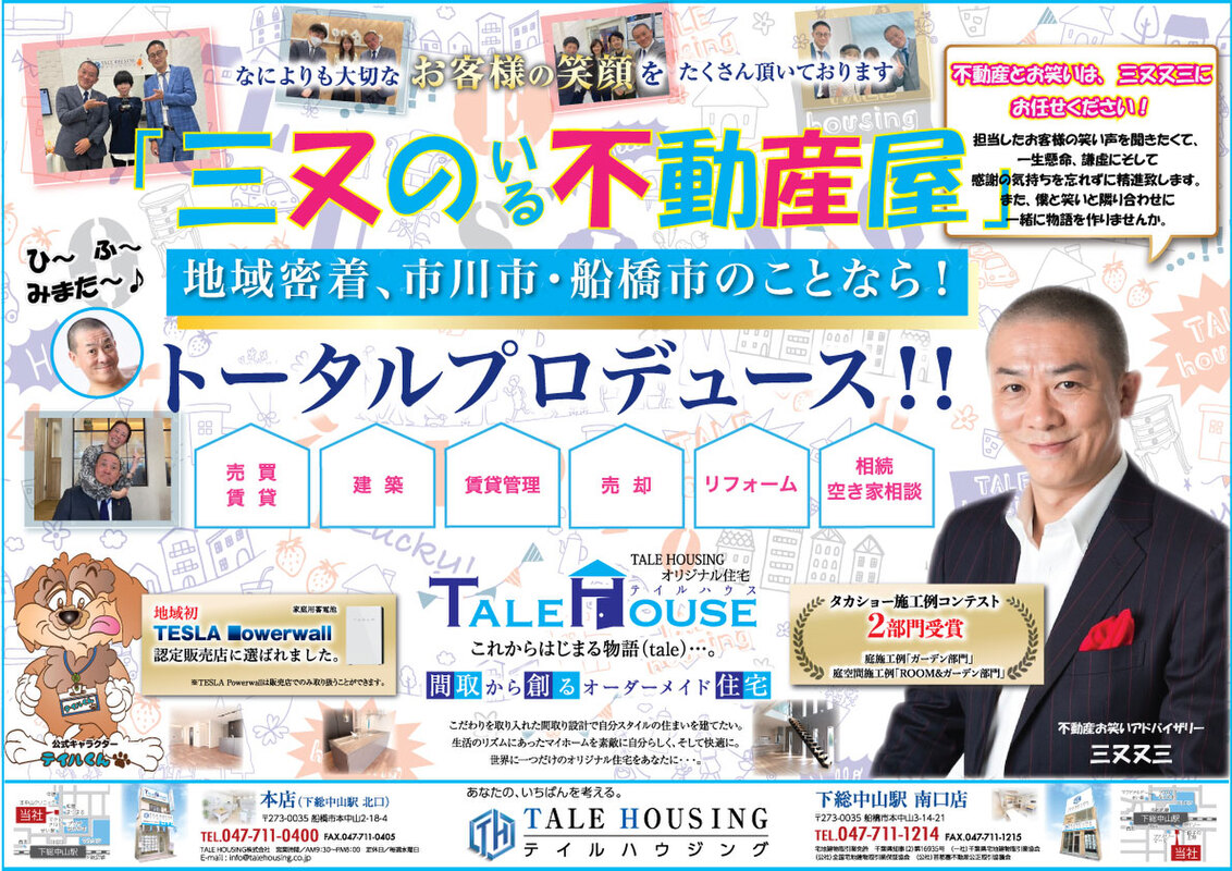 【TALE HOUSINGは、市川市融資取扱高10年連続ナンバー1!!(16年~25年某金融機関)】 ご案内・物件詳細情報記載パンフレットのご請求はお気軽にお問い合わせ下さい。 |
