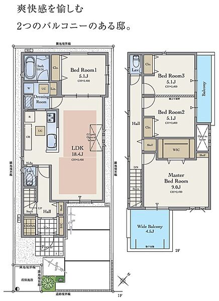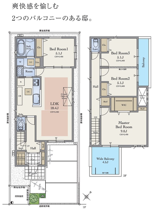 ■心地いい陽だまりに憩う街~南側道路面&カースペース配置~ ■贅沢な暮らしを育む我が家~悠々とした18帖以上のLDK中心~ ■全館浄活水システム標準搭載~ミラブルシャワー/マイクロバブルバス~