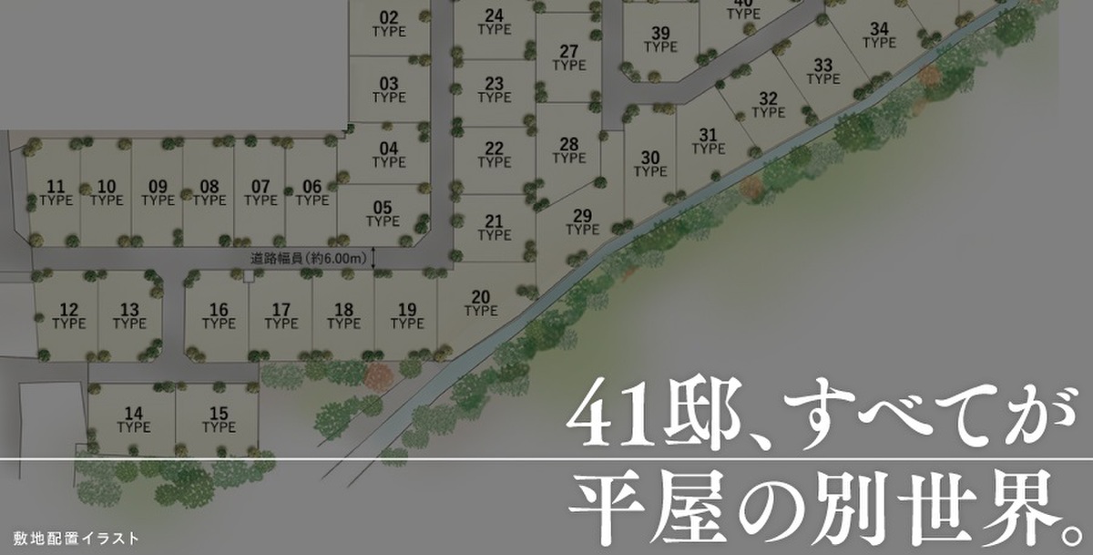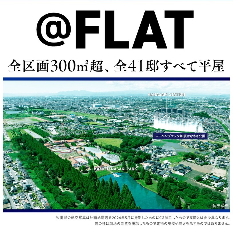総敷地面積14,800m2超、全41邸のすべてが平屋の街、【レーベンプラッツ加須はなさき公園】。
