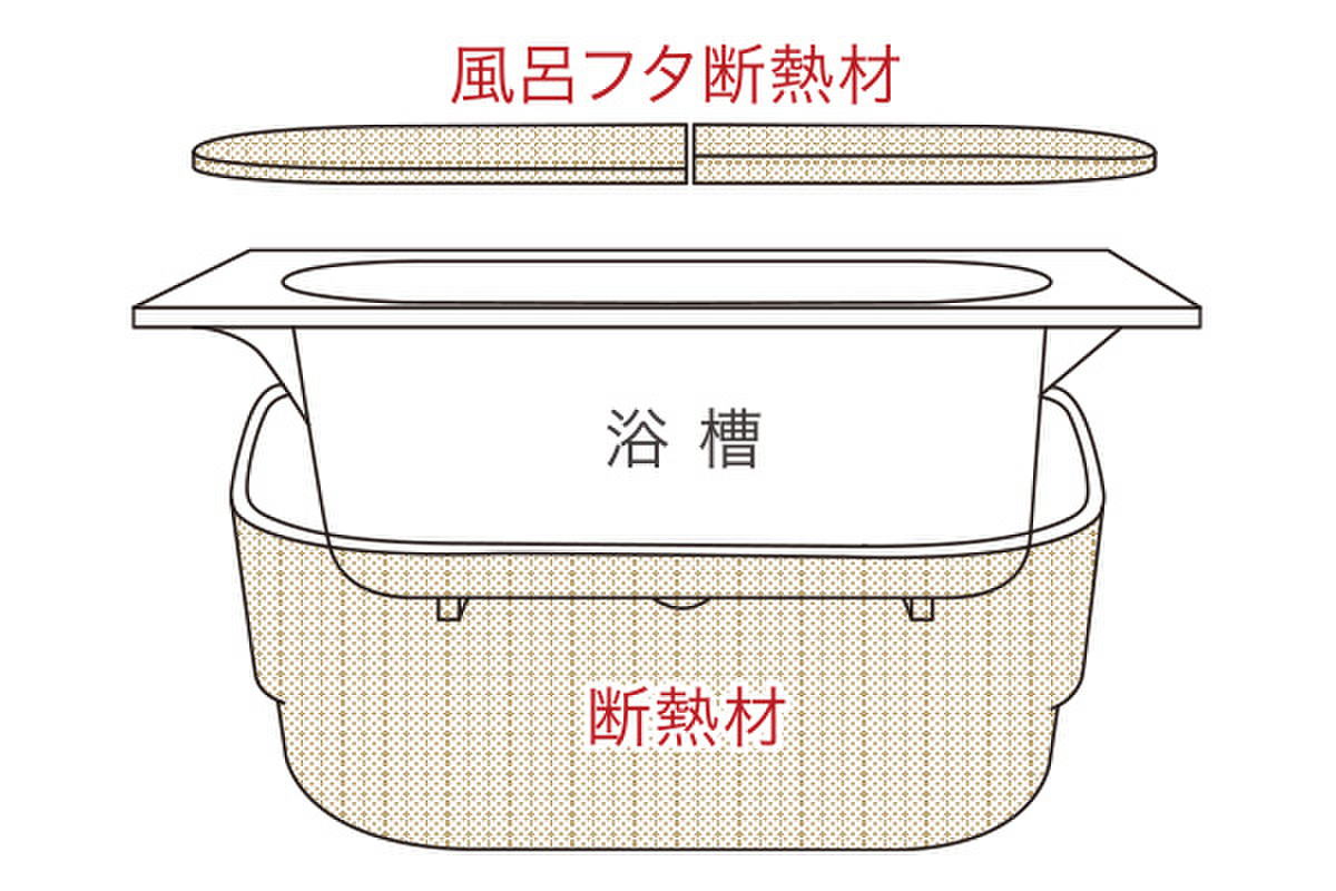 浴槽も風呂フタも断熱材でしっかり保温。断...