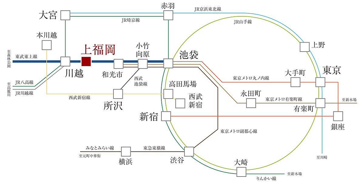 東武東上線「上福岡」駅 徒歩19分~20分 東武東上線「川越」駅 バス23分「ヤオコー川越藤間店」バス停 徒歩5分~6分 西武池袋線「所沢」駅 バス43分「鶴ヶ岡一丁目」バス停 徒歩19分~20分 |