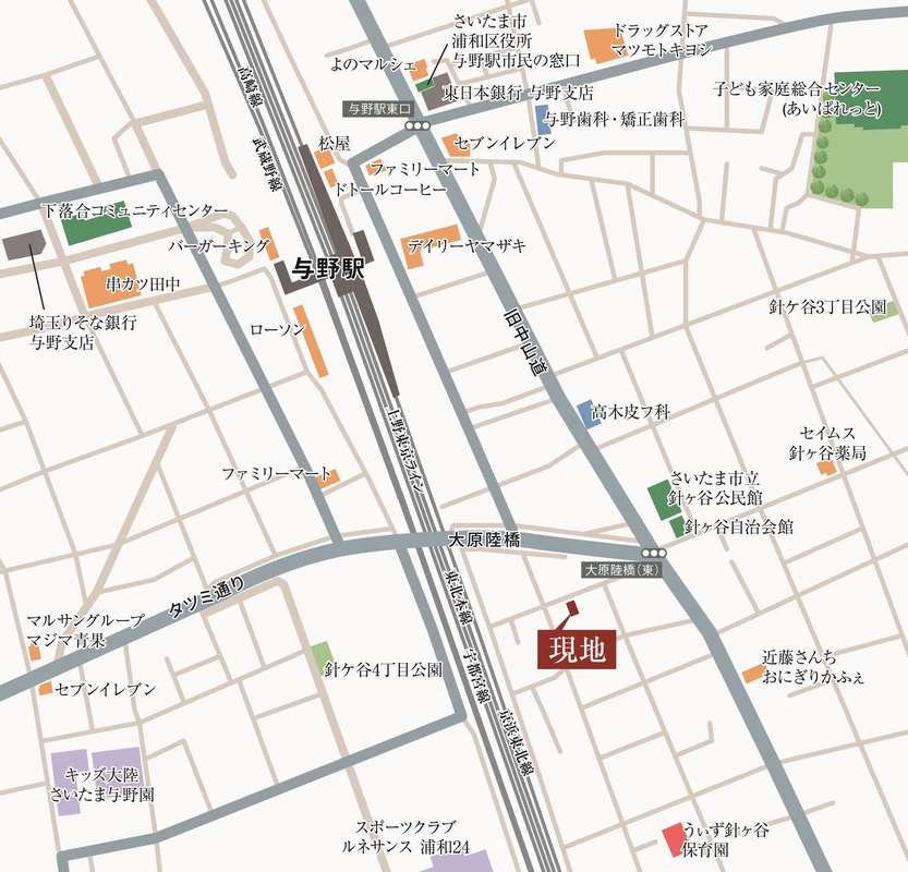 JR京浜東北・根岸線「与野」駅 徒歩5分 JR京浜東北・根岸線「さいたま新都心」駅 徒歩20分 |