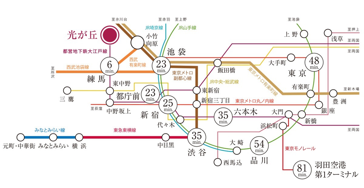 始発駅である都営地下鉄大江戸線「光が丘」駅まで徒歩圏内の立地で、都心主要駅までのアクセス良好、通勤・通学も快適です。是非、周辺環境と併せて現地をご確認ください。お問い合わせをお待ちしております!