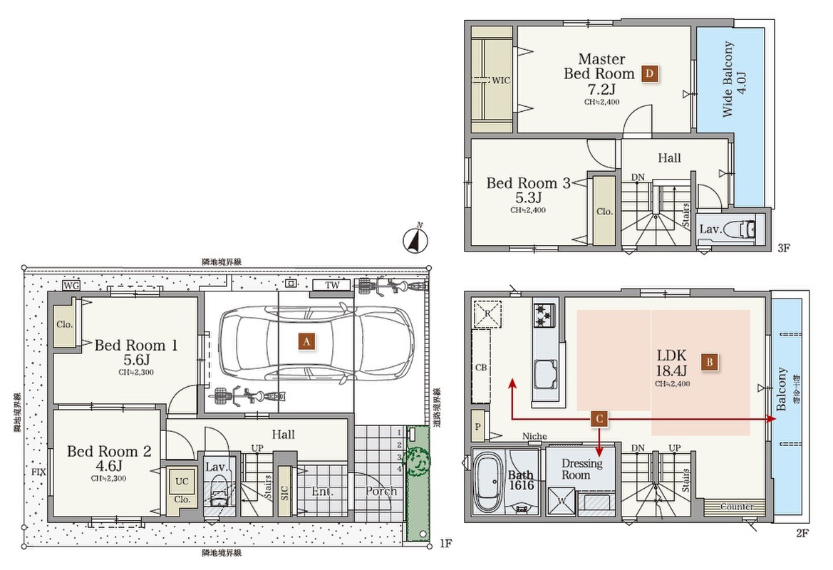 | 間取り | 4LDK | 建物構造 | 木造3階建て(木造軸組み+パネル工法) |