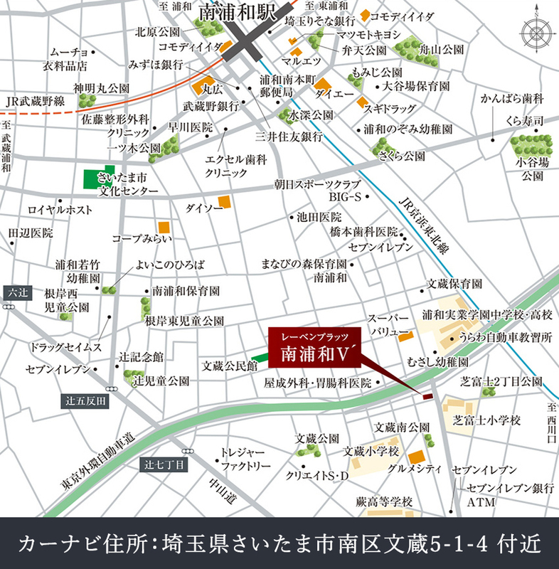 JR京浜東北・根岸線「南浦和」駅 徒歩17分 JR武蔵野線「南浦和」駅 徒歩17分 |