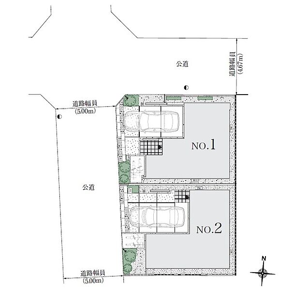 | 駐車場 | 1台 | 道路の幅員 | 北側4.67m道路 、西側5.00m道路 アスファルト舗装 |