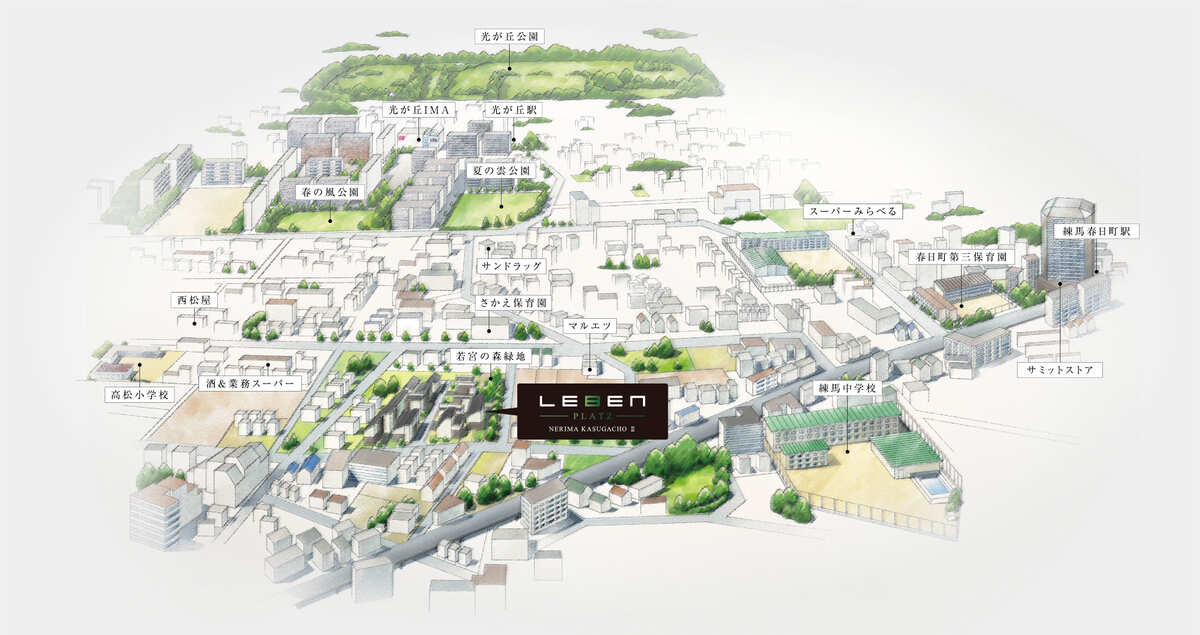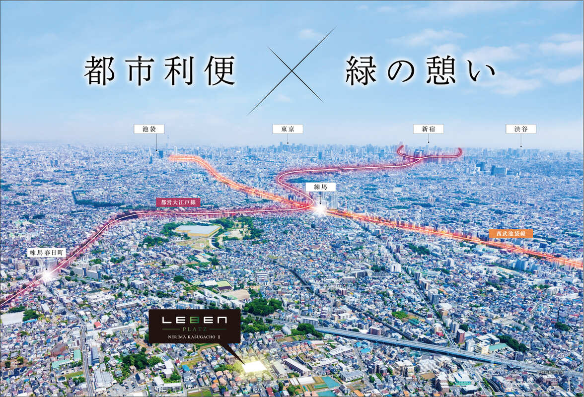 全邸ゆとりの18帖超のLDK、個性豊かな邸別設計で快適に暮らせる3LDK・4LDKの住まい。都営地下鉄大江戸線「練馬春日町」駅、「光が丘」駅の2駅利用可能な立地。