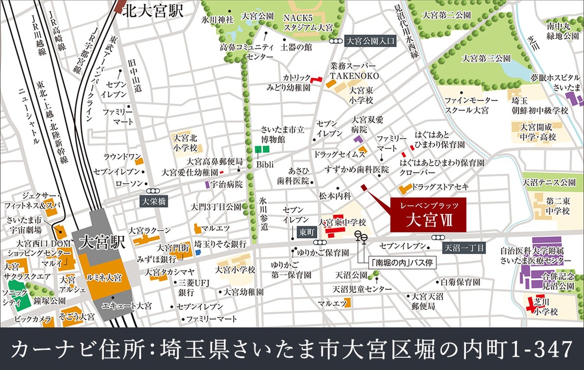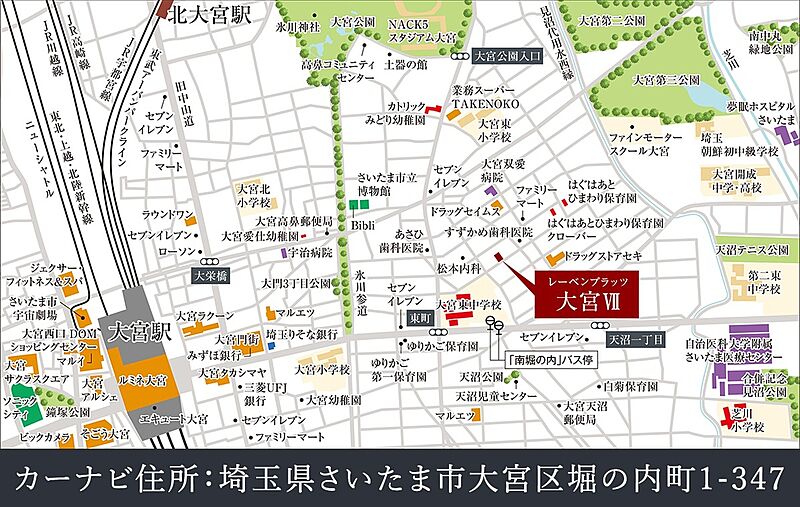 JR京浜東北・根岸線「大宮」駅 徒歩15分 JR埼京線「大宮」駅 徒歩15分 東武野田線「大宮」駅 徒歩15分 |