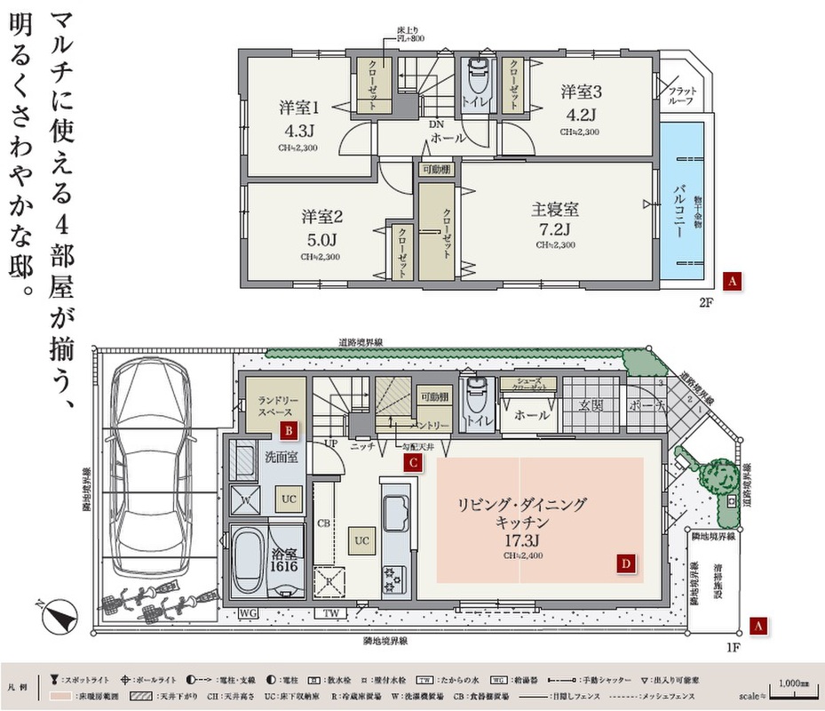 - ※完成予想図やCG合成画像は、門塀・植栽・庭・外観等、実際とは多少異なる場合があります。