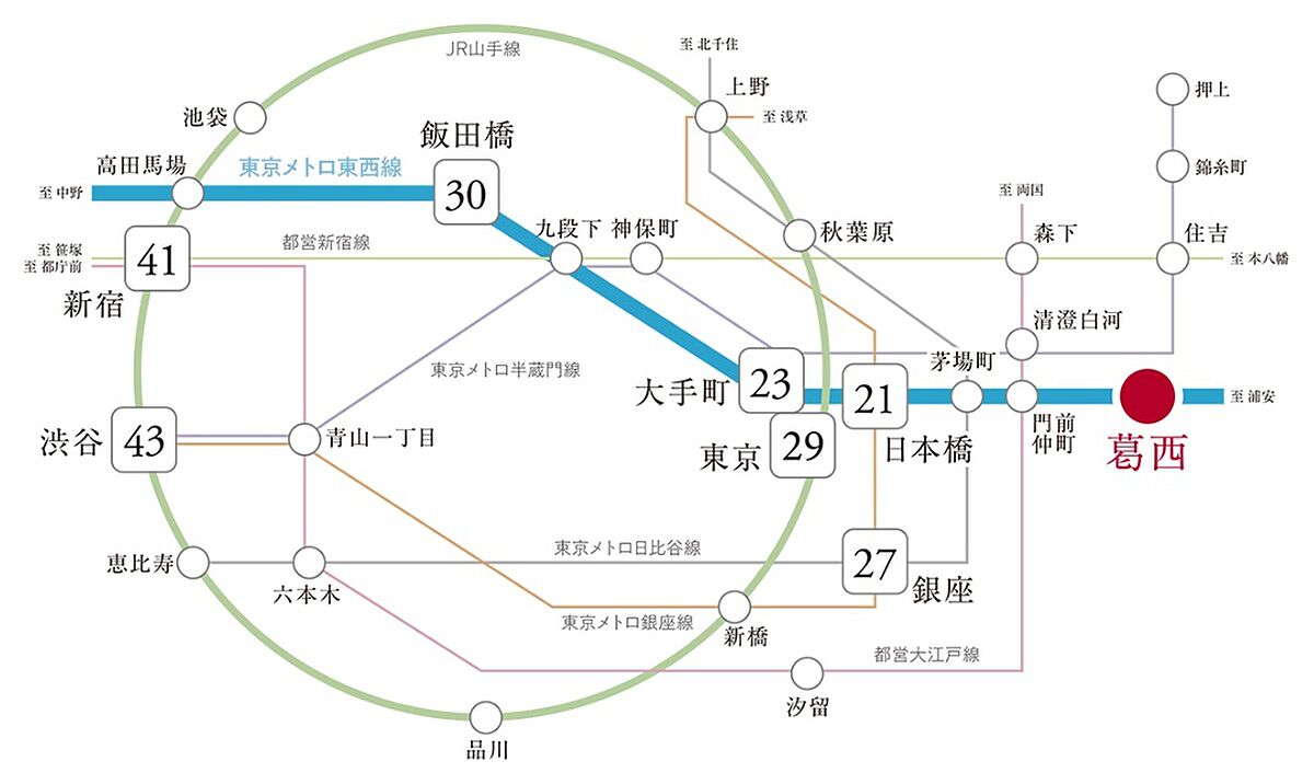 ◎東京メトロ東西「日本橋」駅、「大手町」駅まで乗り換えなし