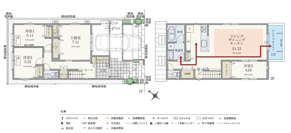 - ※完成予想図やCG合成画像は、門塀・植栽・庭・外観等、実際とは多少異なる場合があります。