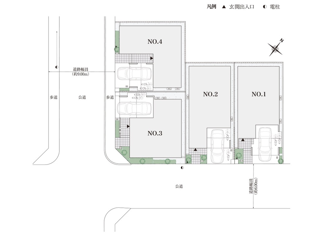 | 駐車場 | 1台 | 道路の幅員 | 南東側6.00m道路 、南西側9.00m道路 アスファルト舗装 |