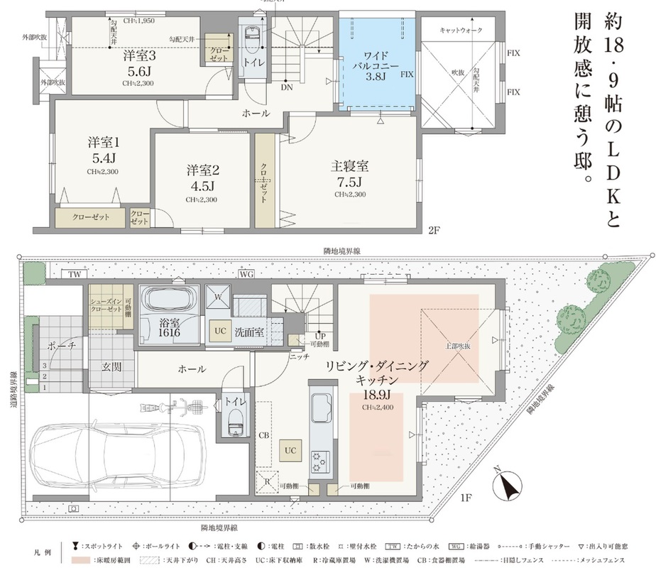 ・開放感ある吹き抜けが魅力の18帖超LDK