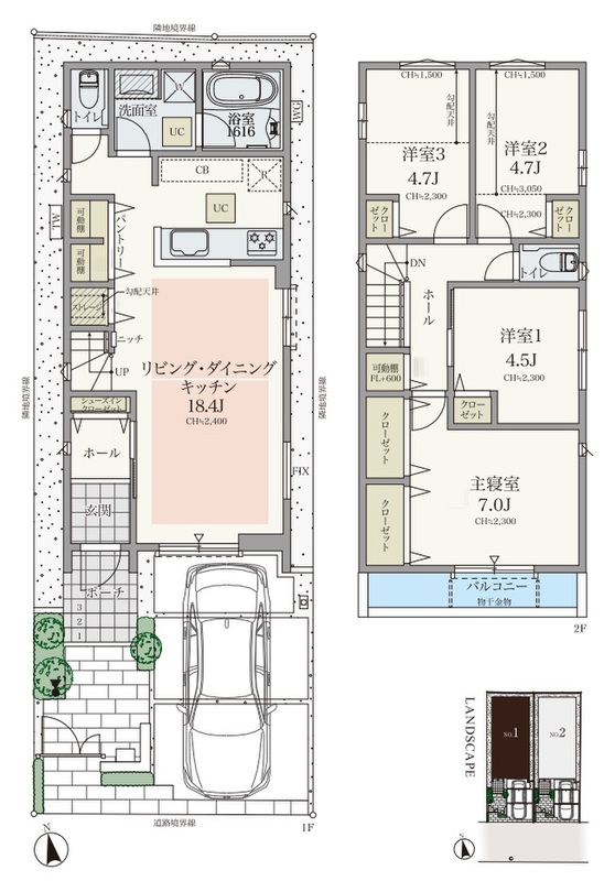 ・陽当たり良好な南側接道 全邸4LDK・約18帖超LDK