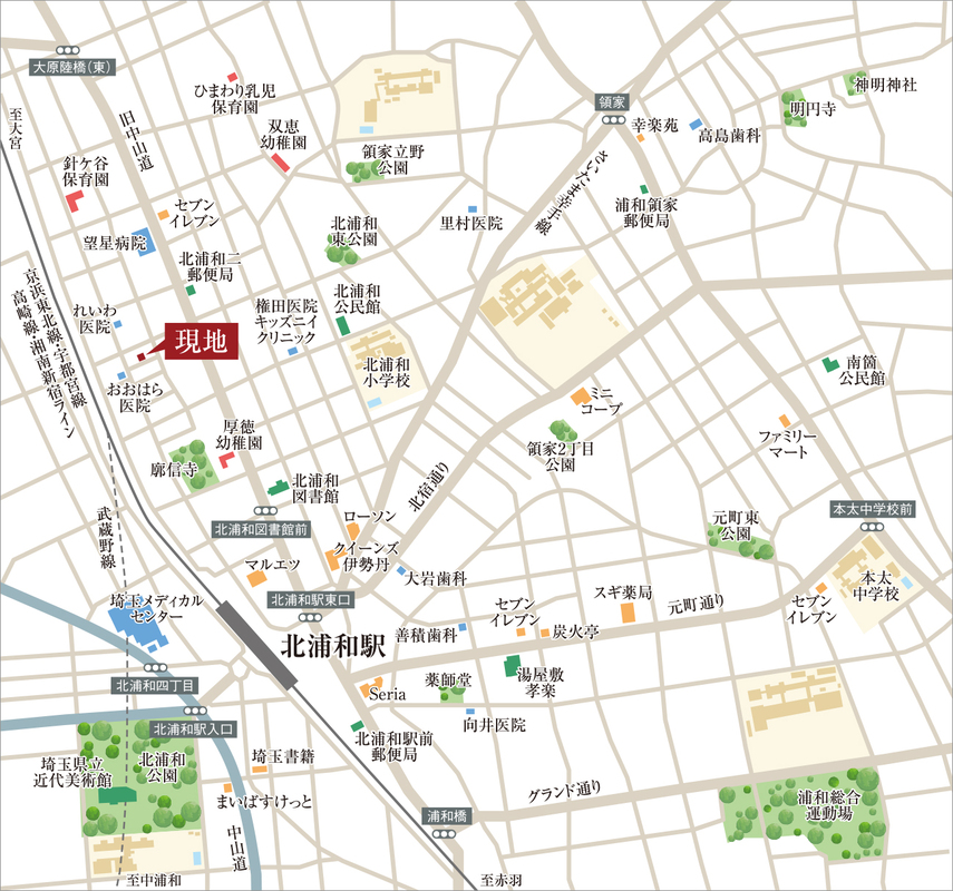 JR京浜東北・根岸線「北浦和」駅 徒歩8分 JR京浜東北・根岸線「与野」駅 徒歩12分 JR埼京線「南与野」駅 徒歩24分 |
