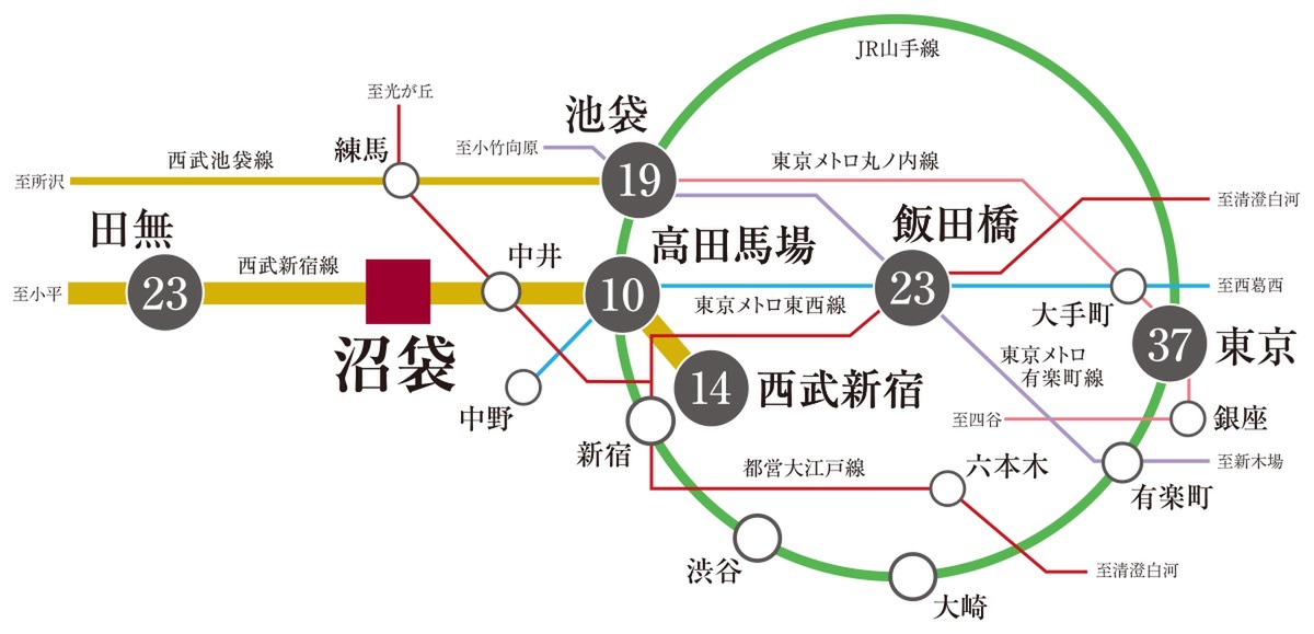 都営大江戸線「練馬」駅 徒歩14分 西武池袋線「桜台」駅 徒歩15分 西武新宿線「沼袋」駅 徒歩17分 |